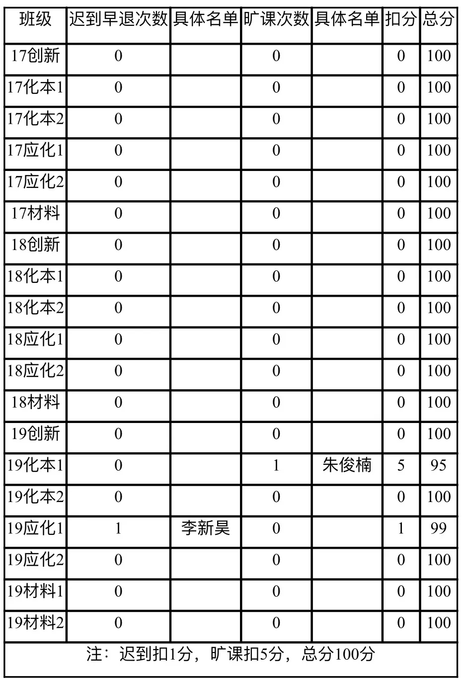 为保证疫情期间线上教学顺利展开、加强6165cc金沙总站检测中心的学风建设、督促学生按时参与线上课程,现对2019-2020学年第二学期第十四周考勤情况进行通报。每天由各班负责人统计各科出勤情况并上报,最终一周的考勤情况于每周五进行汇总公布。